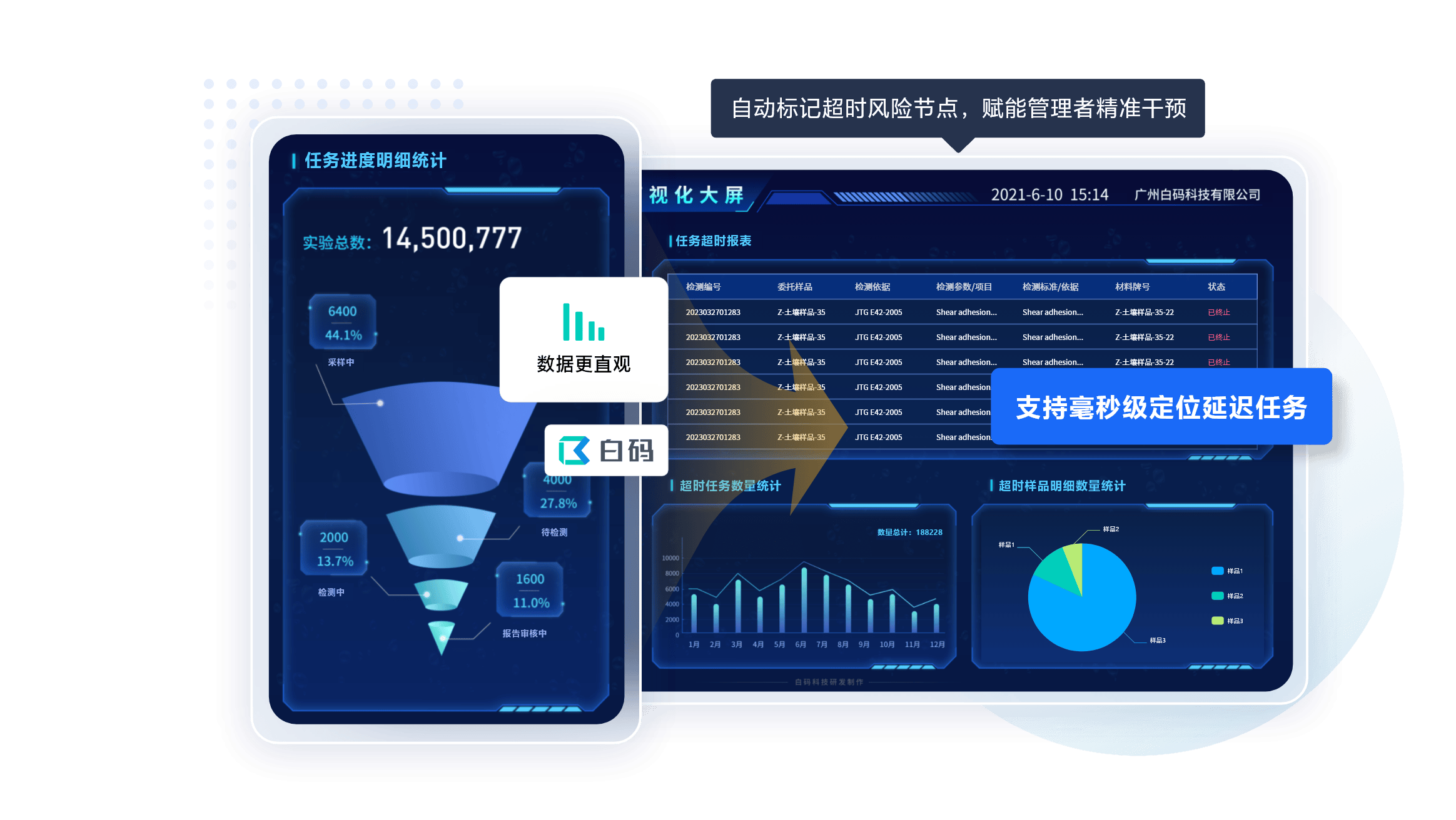 系统的可视化监控平台,实时展示各实验室站点的业务进度、检测质量、合规情况、资源使用等信息。集团总部管理人员可通过平台实时掌握各站点的运营状态,当某站点出现检测质量异常、任务延误、合规风险等问题时,系统自动发出预警,管理人员可及时介入干预,避免问题扩大化。