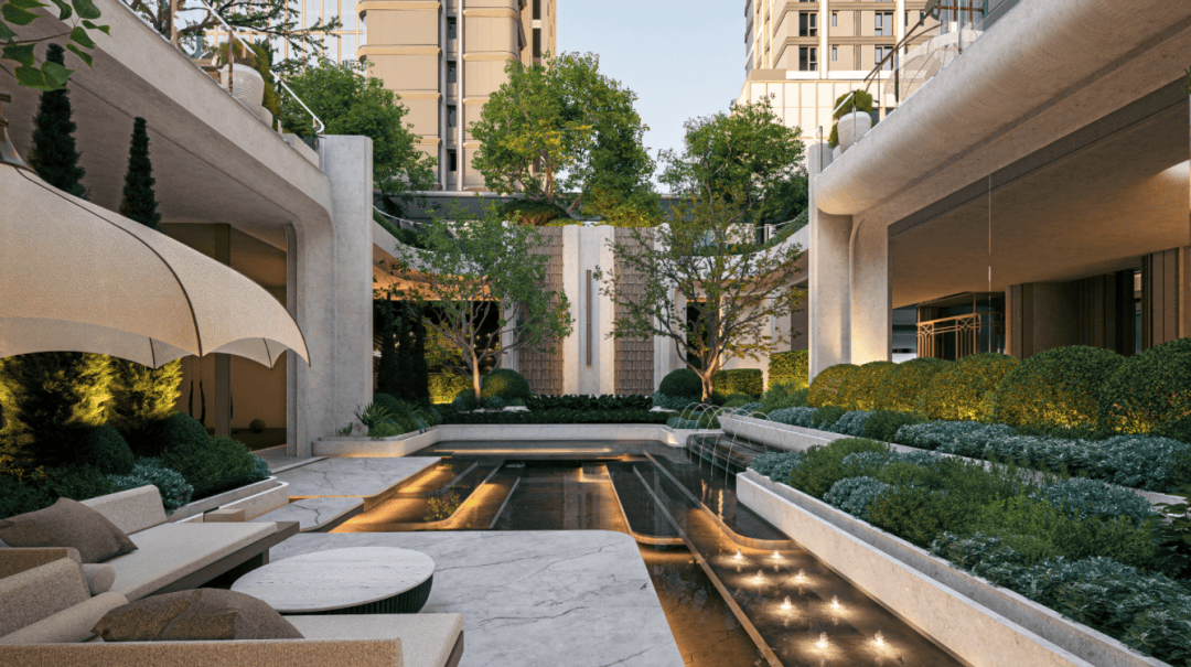 更是集功能性与美学于一体,中央水景、休闲坐席与健身区、恒温泳池等,既满足业主的运动需求,也为社交聚会提供了优雅场所。