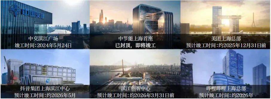 。目前,抖音上海滨江中心、哔哩哔哩全球总部、美团等互联网巨头已相继入驻,