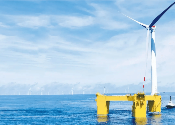 我国研制的全球最大直驱型漂浮式海上风电机组在福建福清下线层楼房高度,技术核心包括直驱和漂浮。风机高而不倒的原因是通过弹性海底锚链牵引,可自动伸缩97国际官方网址以抵抗17级台风,并通过调节下方空管内的水流方向保持平衡。
