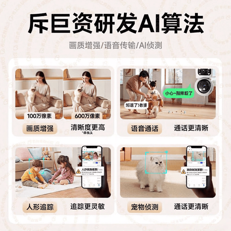 在现代家庭安防中,具备800万像素传感器的家用云台相机无疑是不可或缺的利器。其支持线P),即使放大后也能保持清晰度,细节尽显无遗。这款相机还拥有星光级微光全彩技术,在低光环境中同样能提供高质量画面,让您即使在夜间也能放心监控周围动态。